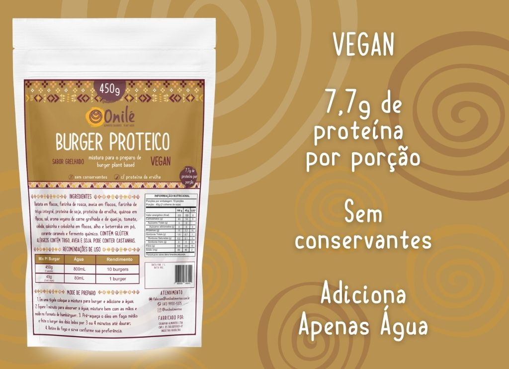 Onilé Lovers encontram o mix para Burger Proteico Sabor Grelhado da Onilé pesquisando por: Burger Vegetal, Burger Vegano, Burger Proteico, Burger de Plantas, Mix para Burger, 100% à base de plantas, hambúrguer saudável, preparo rápido, mistura pré-preparada, alternativa vegana.